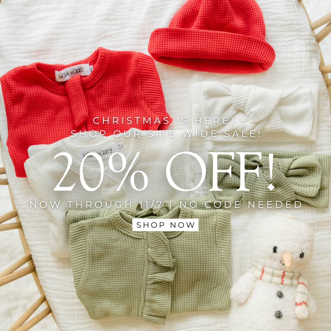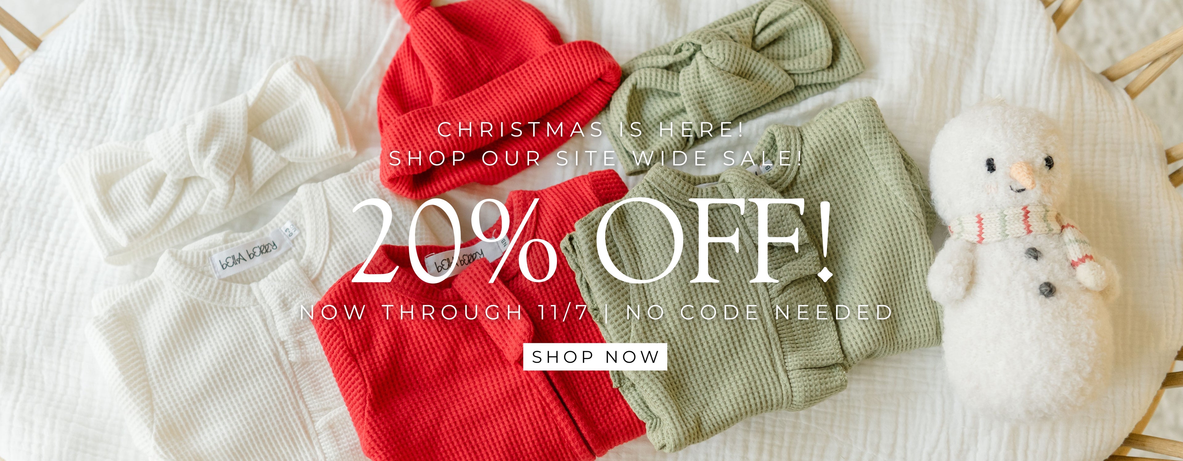 Thank you so much for visiting BellaBerry Designs; it truly means the world to us! I started this little shop in 2020 when I was home with my newborn baby boy as my husband served our country. During that time, I had an idea that soon turned into something bigger. I knew I wanted to create and design comfortable, sustainable, and adorable clothes for little ones that other mamas would love just as much as their babies do! From sweet and adorable take home outfits to personalized gowns, we hope you love browsing our collections!