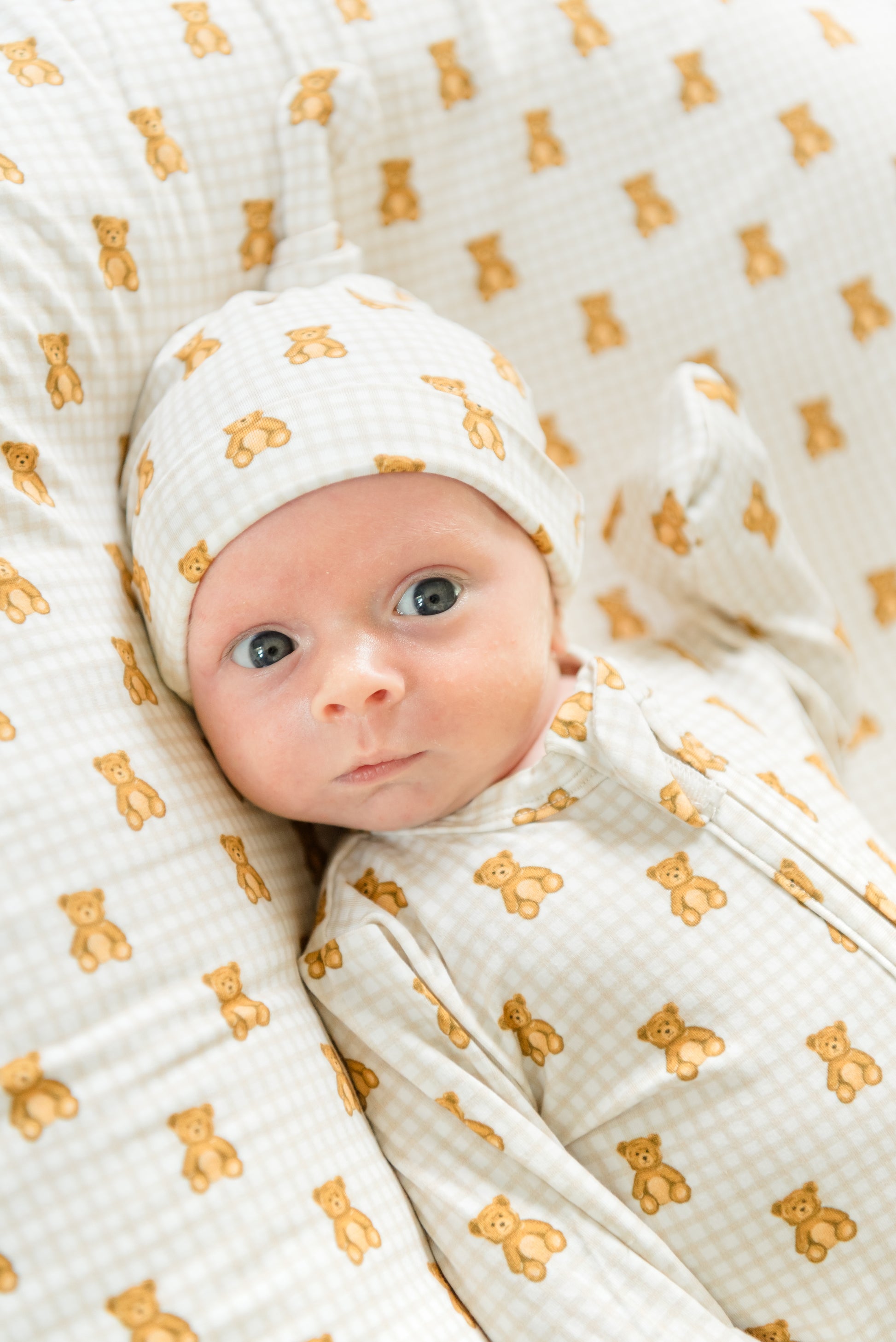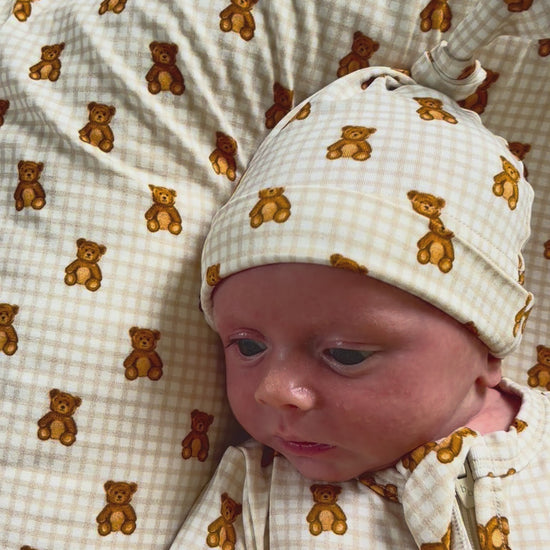 We’re bear-y excited! 🧸🤎 Meet our newest bamboo baby collection, Bear-y Cute! Featuring the sweetest teddy print. Made from buttery-soft bamboo, this cozy set includes a footie, matching hat or bow, and coordinating blanket/swaddle — the perfect snuggly combo for your little cub. ✨
