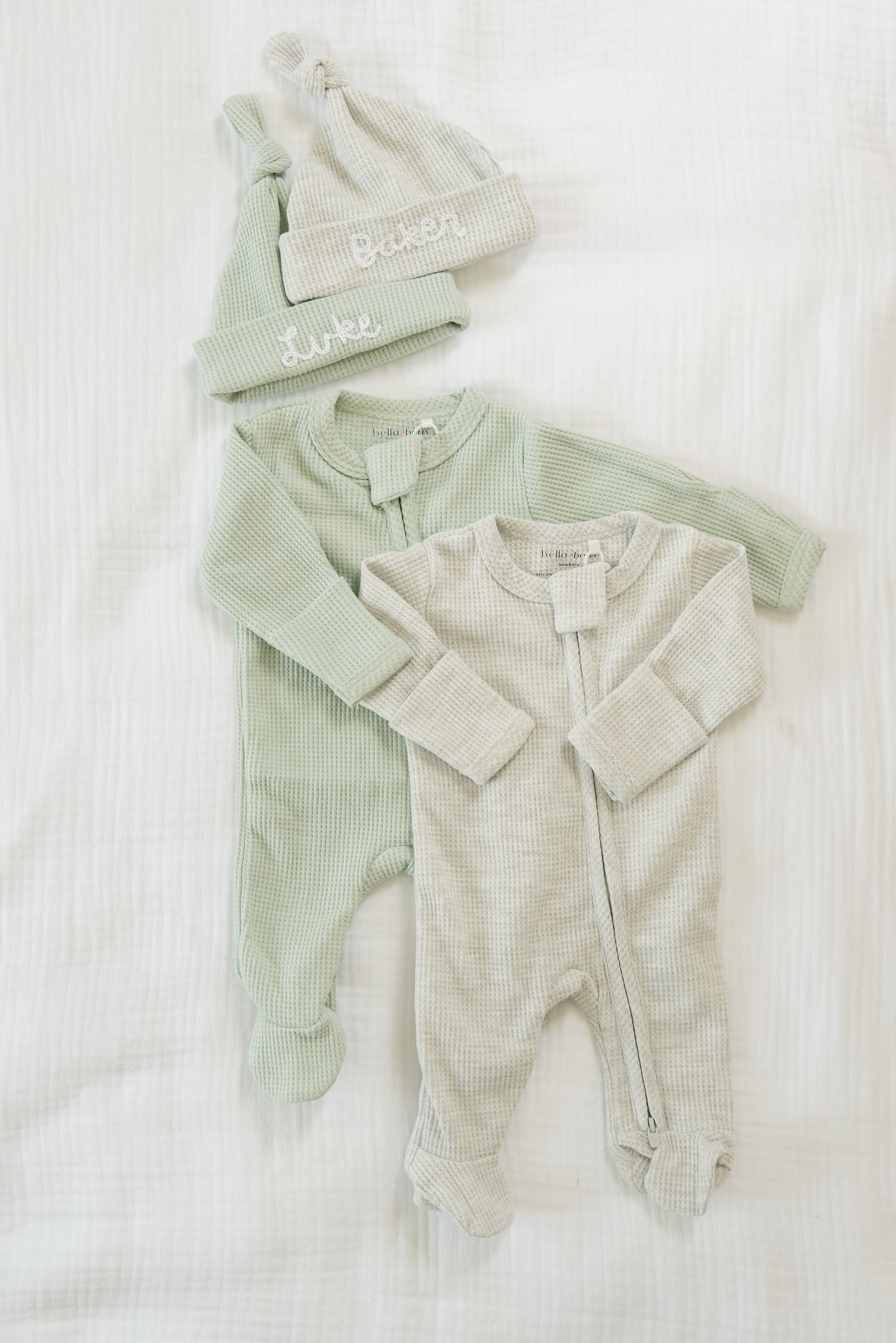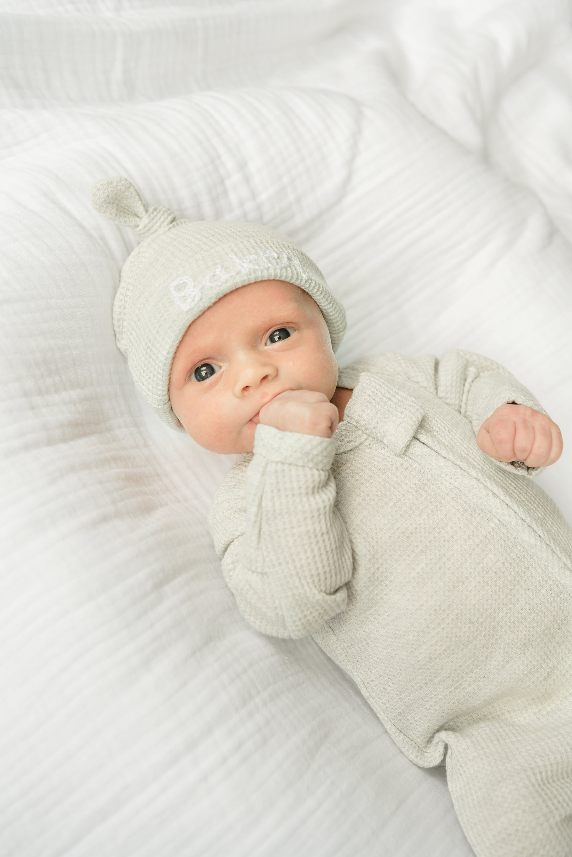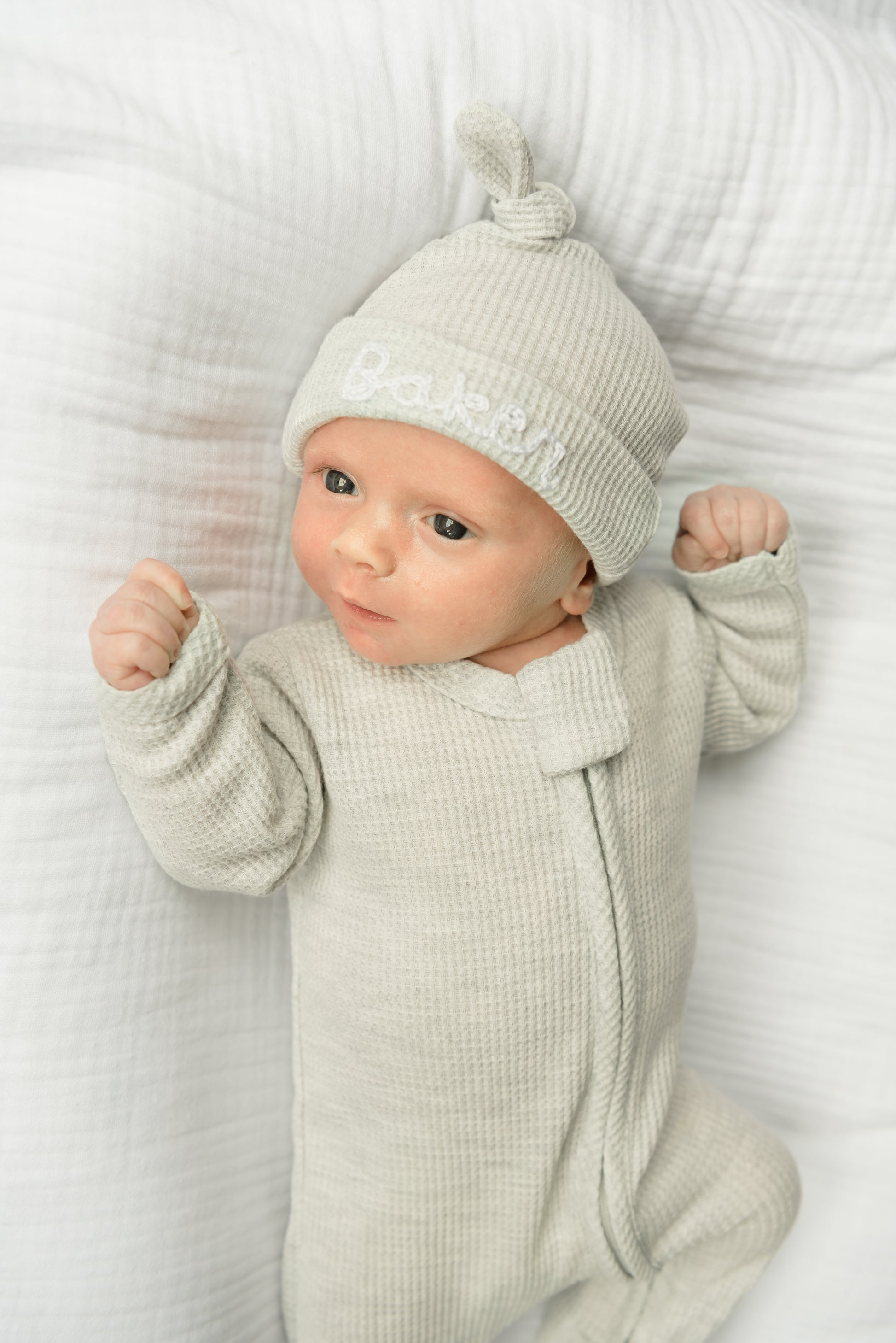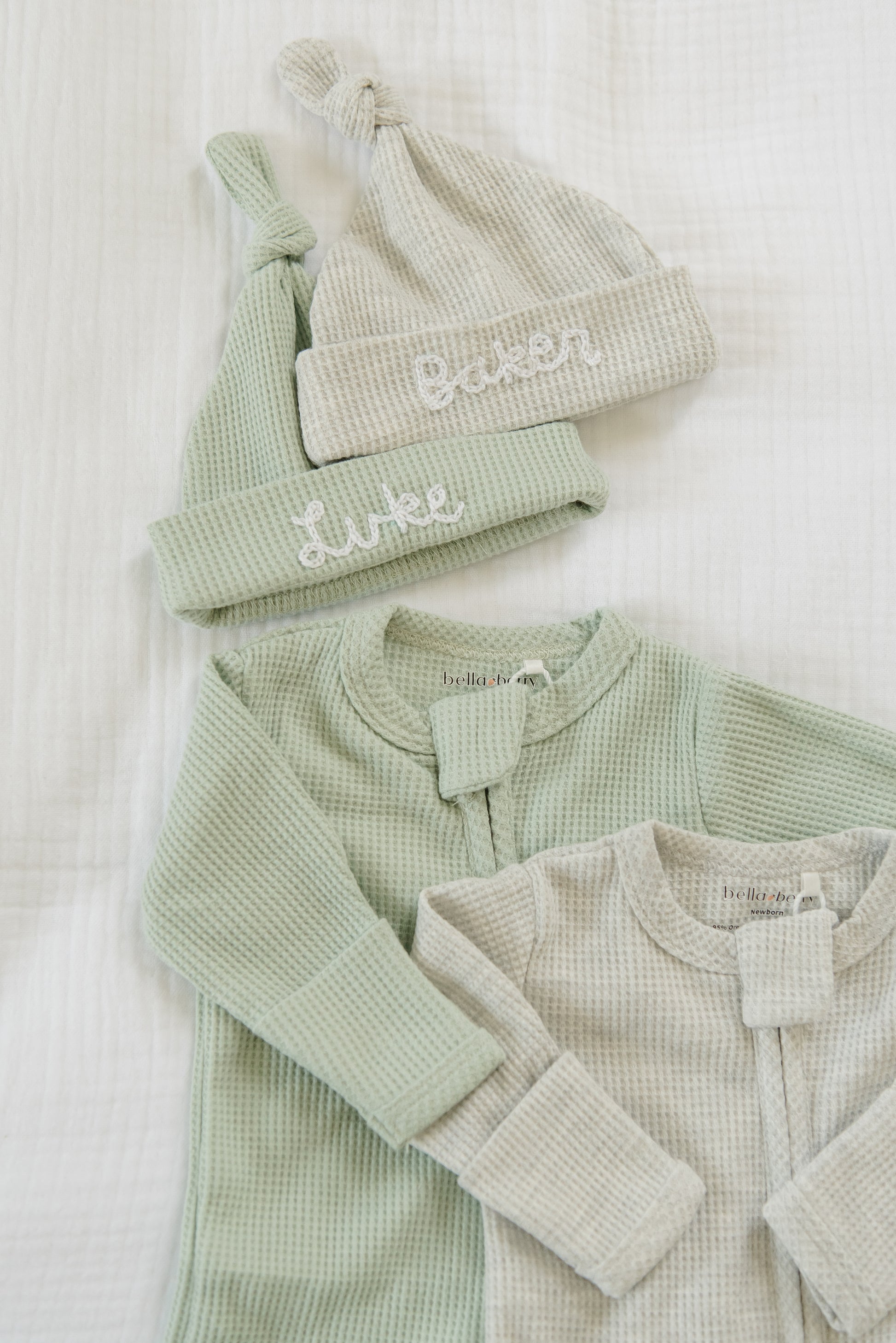 Our custom hand stitched waffle knit hats will make the sweetest addition to your baby's take home outfit. Hand stitched by Tori, a mama of 2, our adorable hats will not only keep your baby warm but will also make a sweet memento!