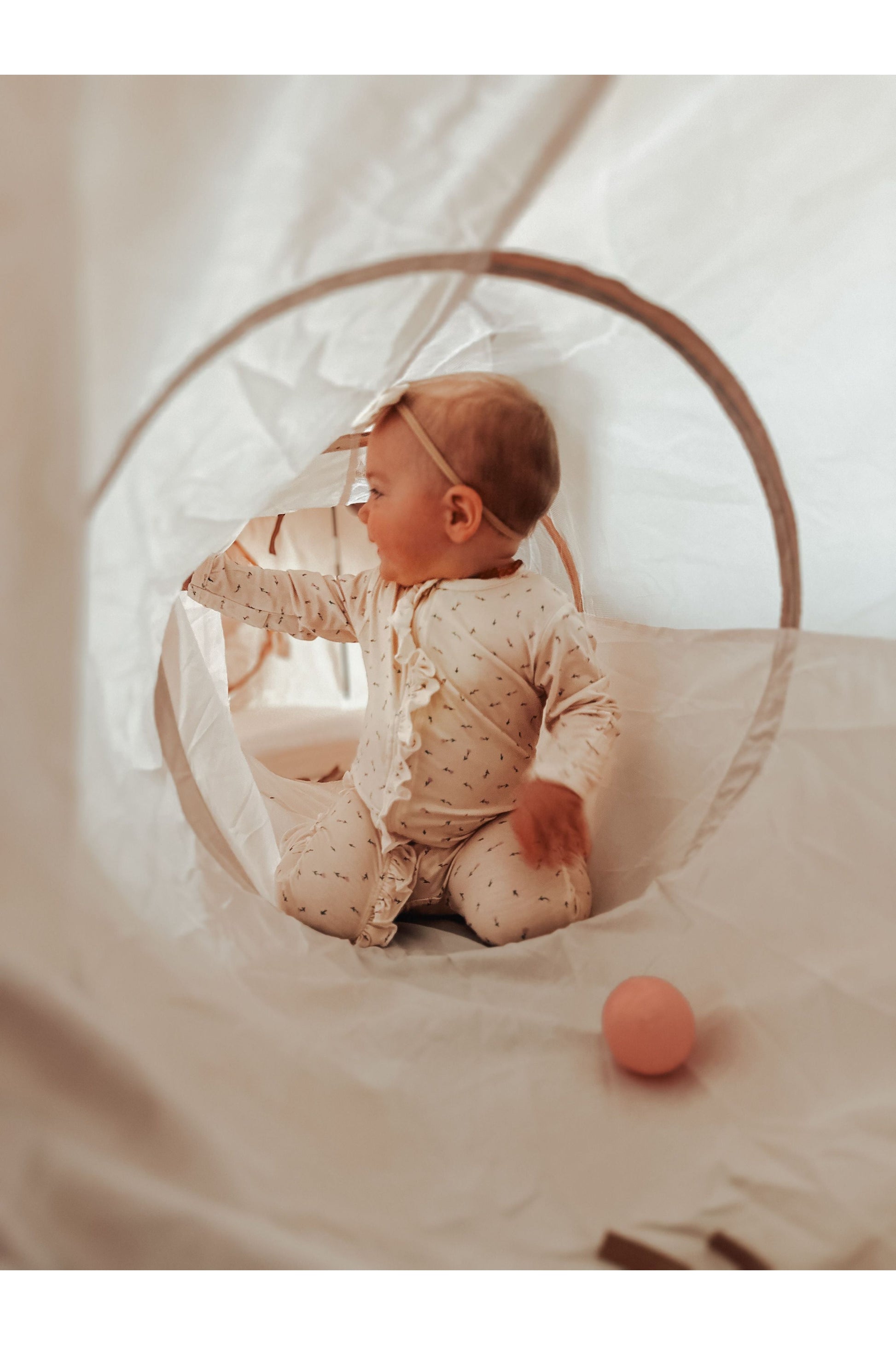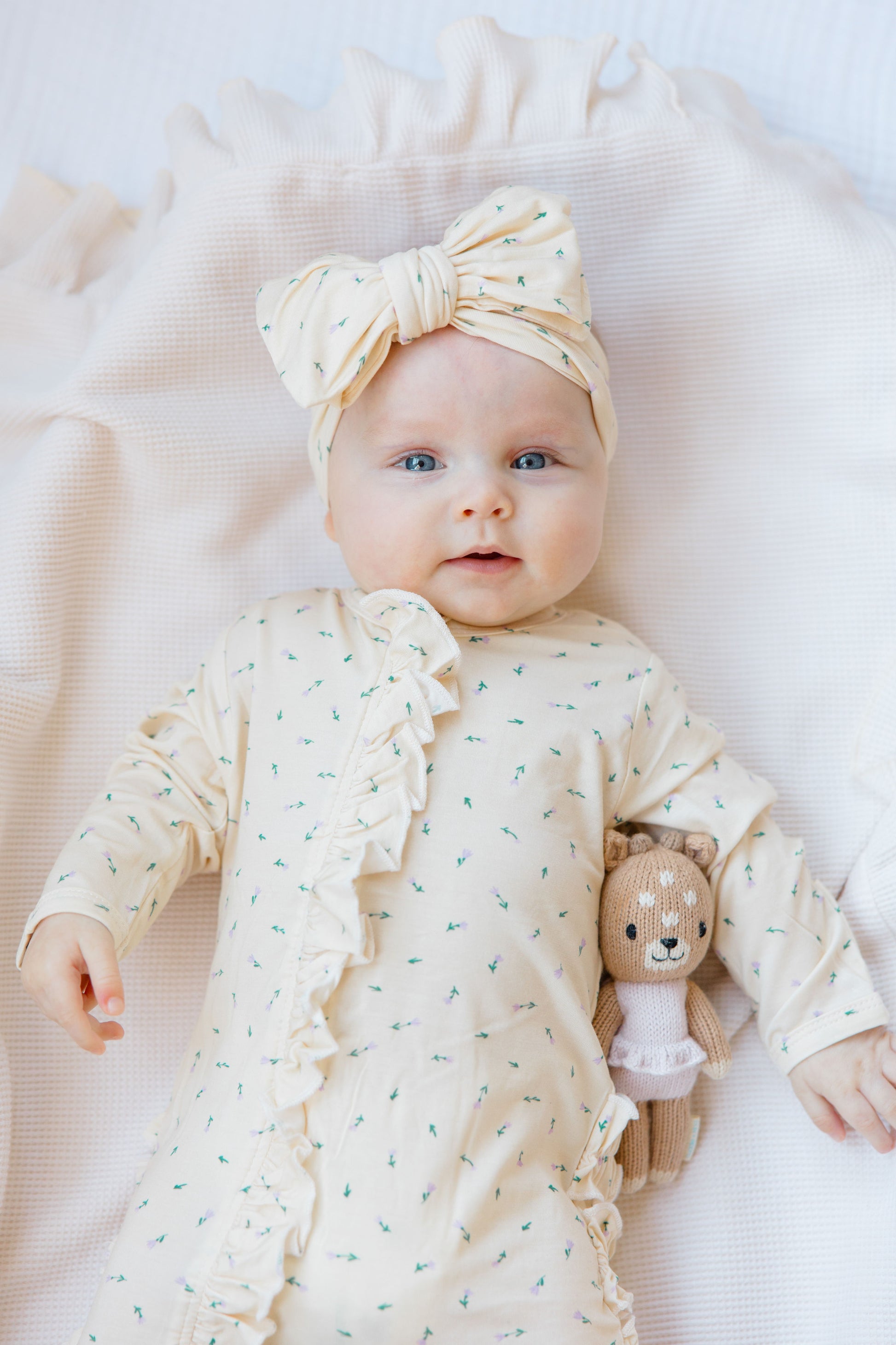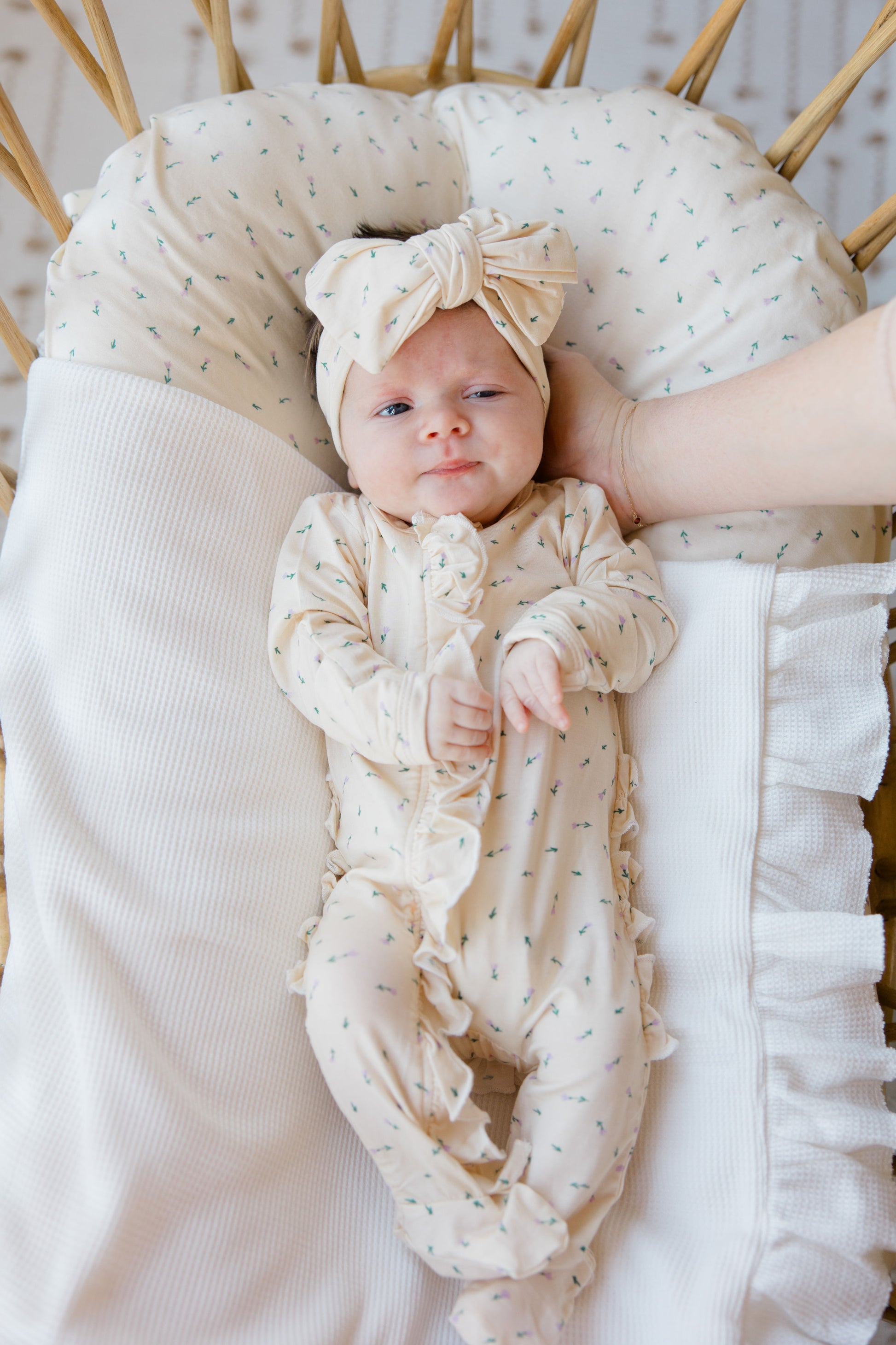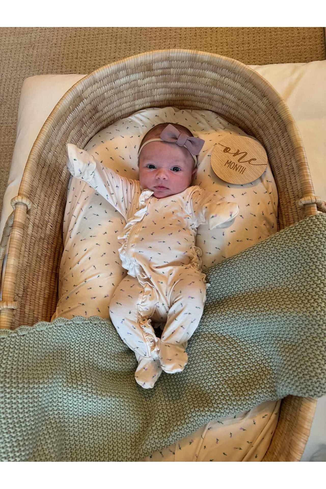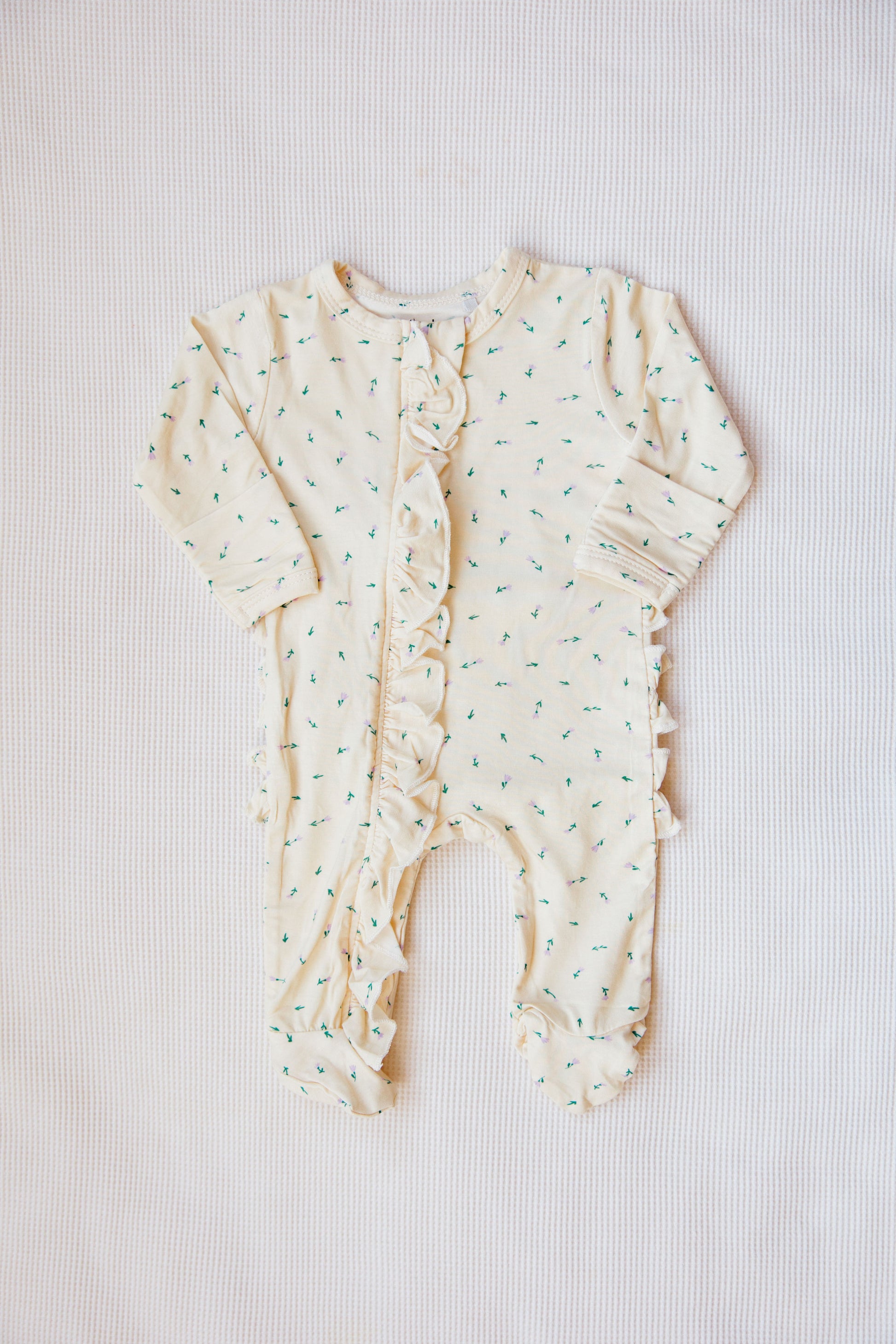 This footie is super cute! I love the soft bamboo materials and the ruffle details. This is perfect for our girl!