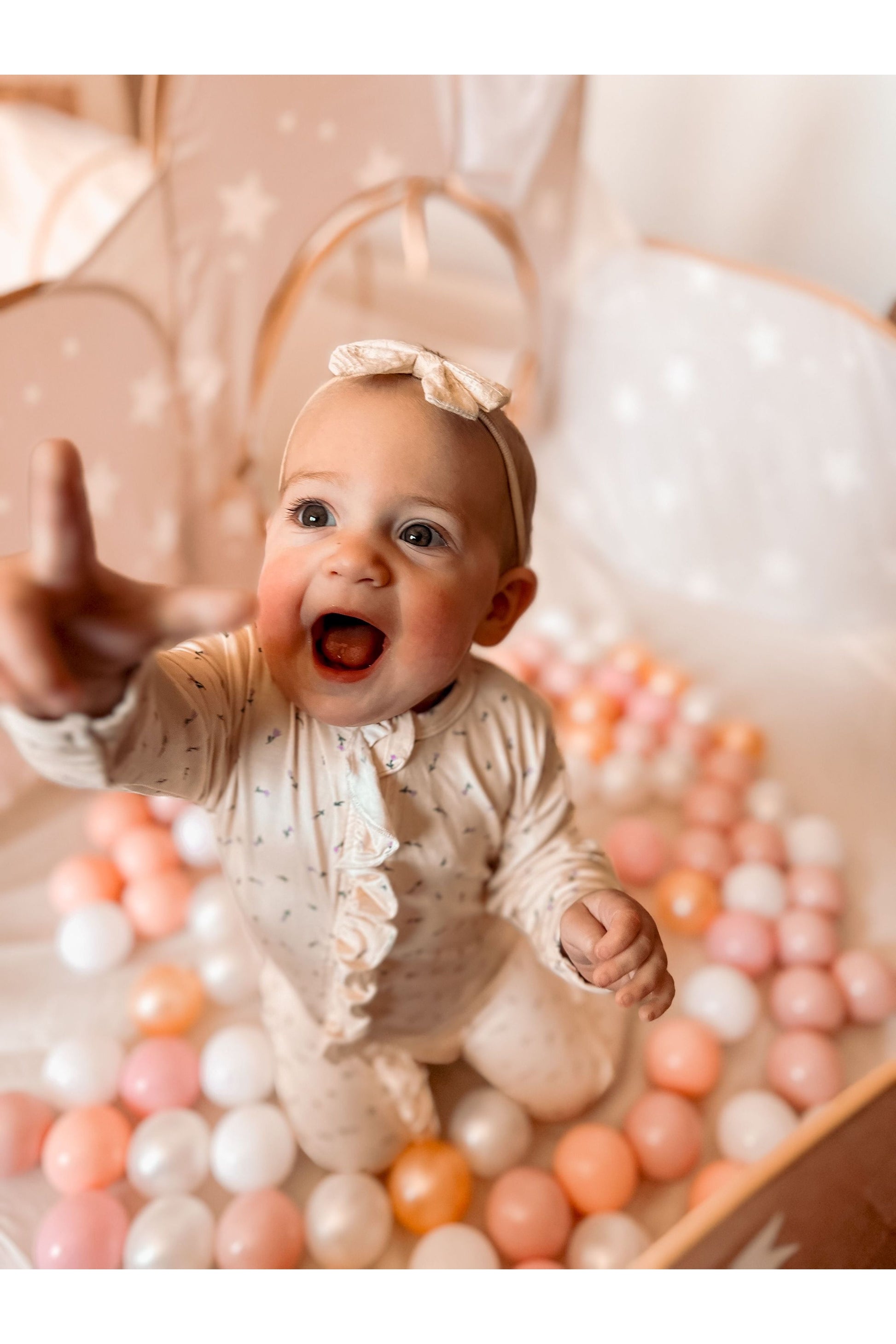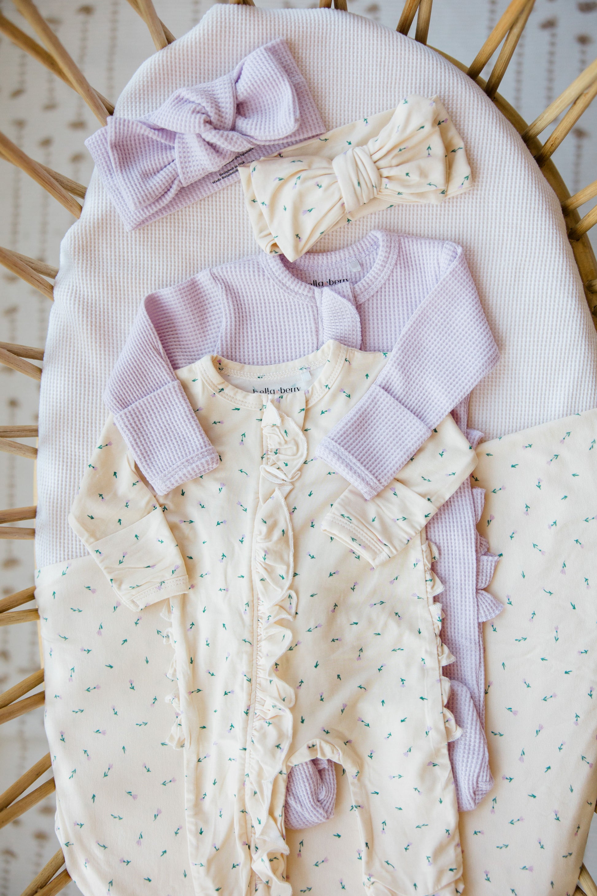 I am really falling in love with this outfit. I got 3 different footie but love this Blossom ruffles the most. Also highly recommend about material feel very comfortable for babies