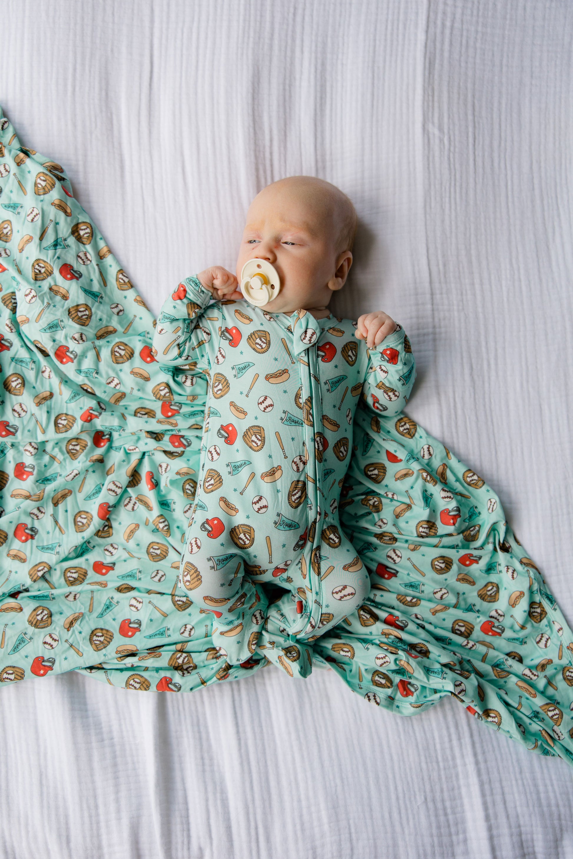 Our Rookie Year collection is up to bat! ⚾️ Made from our signature buttery soft bamboo, this lineup features a footie, knotted hat, and blanket/swaddle—perfect for keeping your little Rookie comfortable from their first pitch to bedtime.